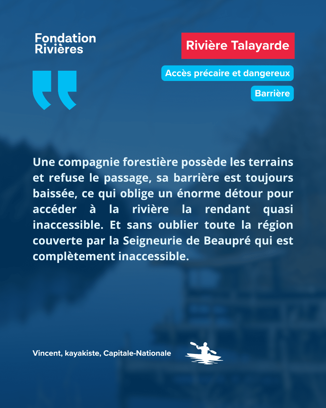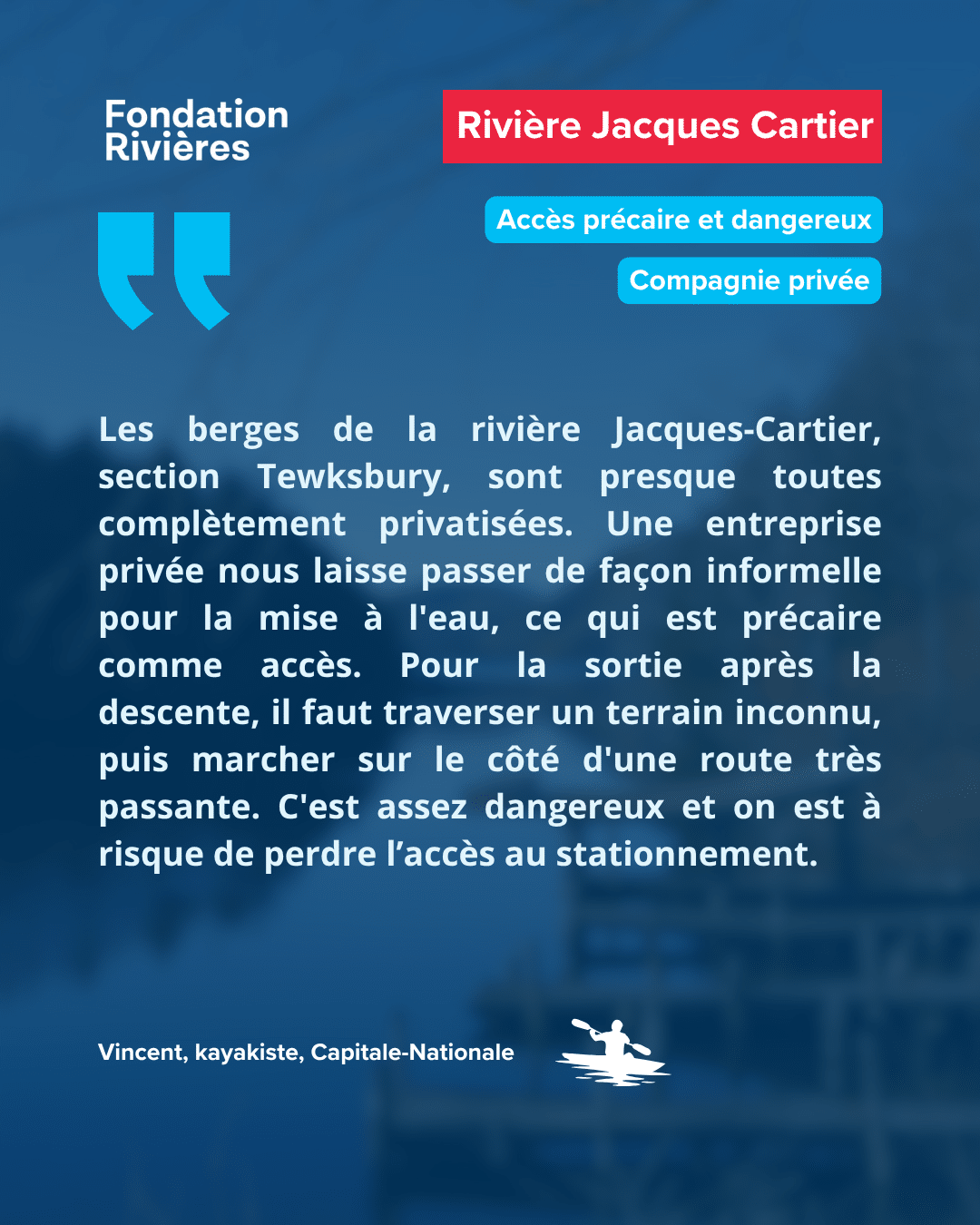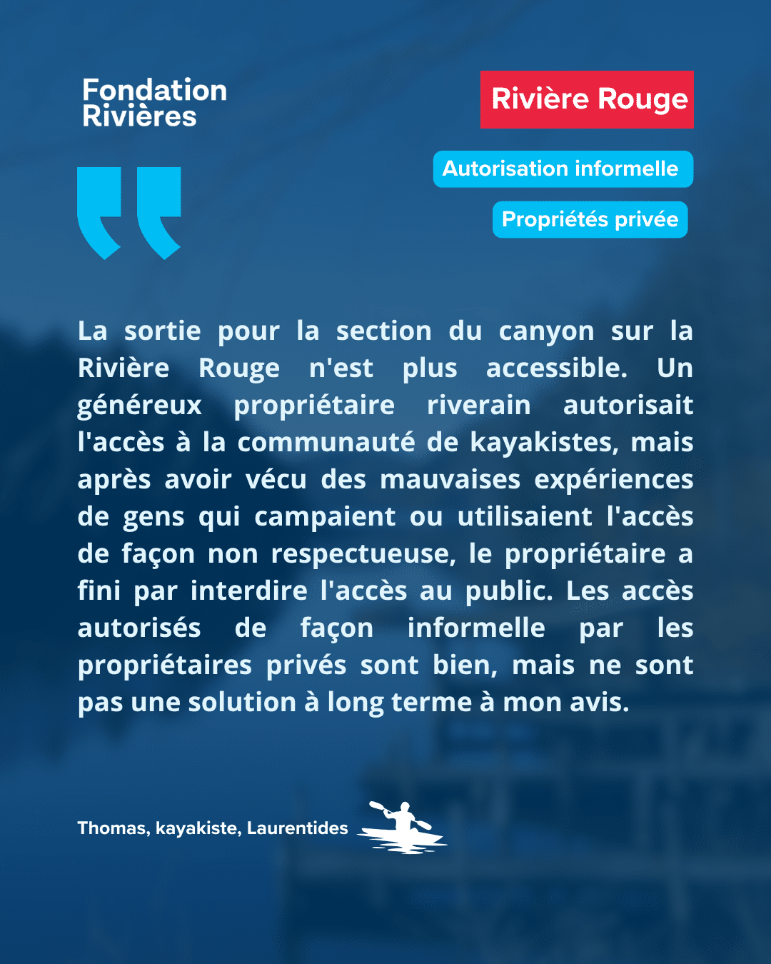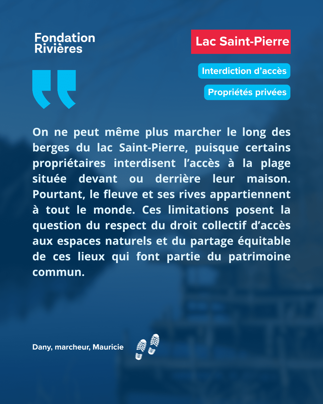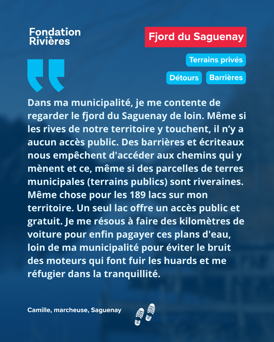 Dans le cadre de sa démarche sur l’accès public aux berges, la Fondation Rivières a recueilli une série de témoignages auprès de ses membres et partenaires à travers le Québec.
